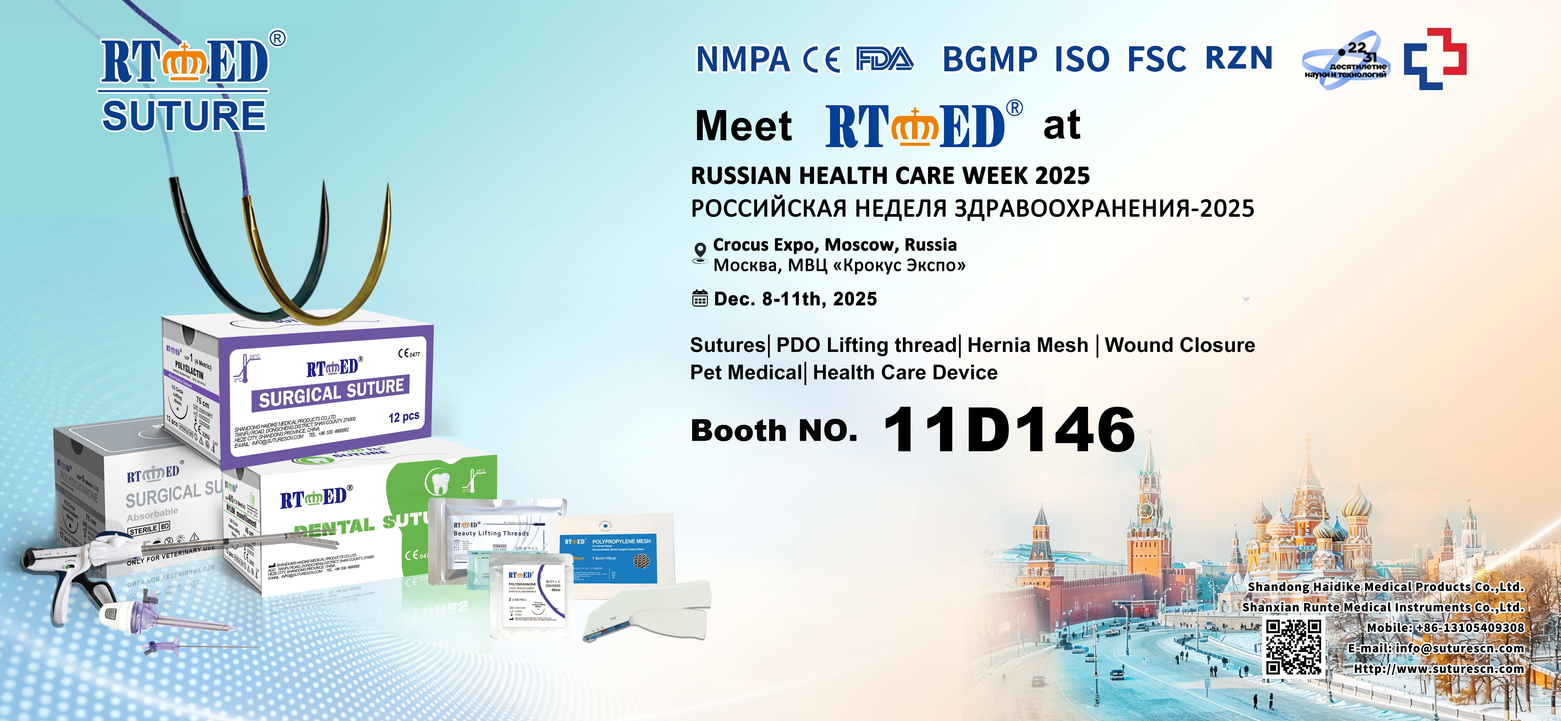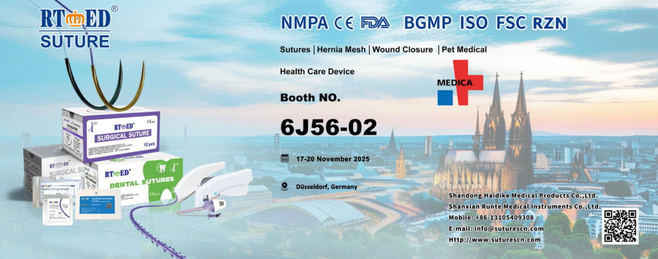 Shandong Haidike Medical Products Co., Ltd. spezialisiert sich auf die Herstellung von medizinischen Verbrauchsmaterialien Unternehmen.Wir haben CE, FDA, ISO und CFDA Zertifizierung.RTMED hat sich als Marke Madrid registriert.Die wichtigsten Produkte sind saugfähige chirurgische Nähte mit Nadel (Plain /Chromic Catgut, PGA, g.U., PGLA, PGCL, etc.), nicht absorbierbare chirurgische Nähte mit Nadel (Seide, Nylon, Polyester, Polypropylen usw.),chirurgische Nadel (300SS und 400SS Serie), Hebefäden für Schönheit, medizinische Maske, Rollstuhl, orthopädische Gussbahnen && Schienen,Polypropylen-Maschen, Tiermedizinische Produkte und so weiter.